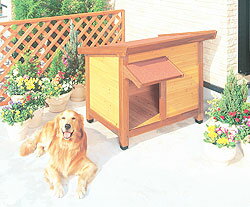 木製の大型犬犬舎 ウッディ犬舎 SWK-910価格: 21,800円レビュー評価: 0.0 レビュー数:0 ++ 商品詳細 ++ ■ サイズ(cm)商品サイズ : 幅1010×奥行870×高さ915 内寸 :幅860×奥行615×高さ655 入口サイズ:幅340×高さ525 ■ カラーブラウン■ 材質天然木■ 備考お客様組立て品 ペット用品大型犬向き片流れ屋根タイプの木製犬舎です。 入口上部に大きめの雨よけをつけ、雨や雪が入り込むのを防ぎます。 また、屋根表面はアスファルト加工を、壁面はアクリルワイピング塗装を施し、塗装落ちや色むらの心配を減らした耐候性、耐久性のある犬舎です。 アジャスターで脚ごとに高さを調節できるので、水平ではない設置面にも対応できます。 ※この商品は2人以上での組立をお勧めし |